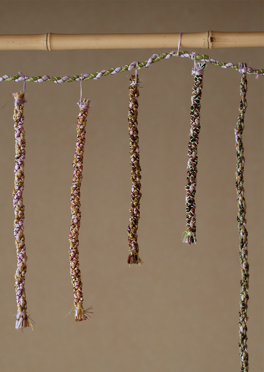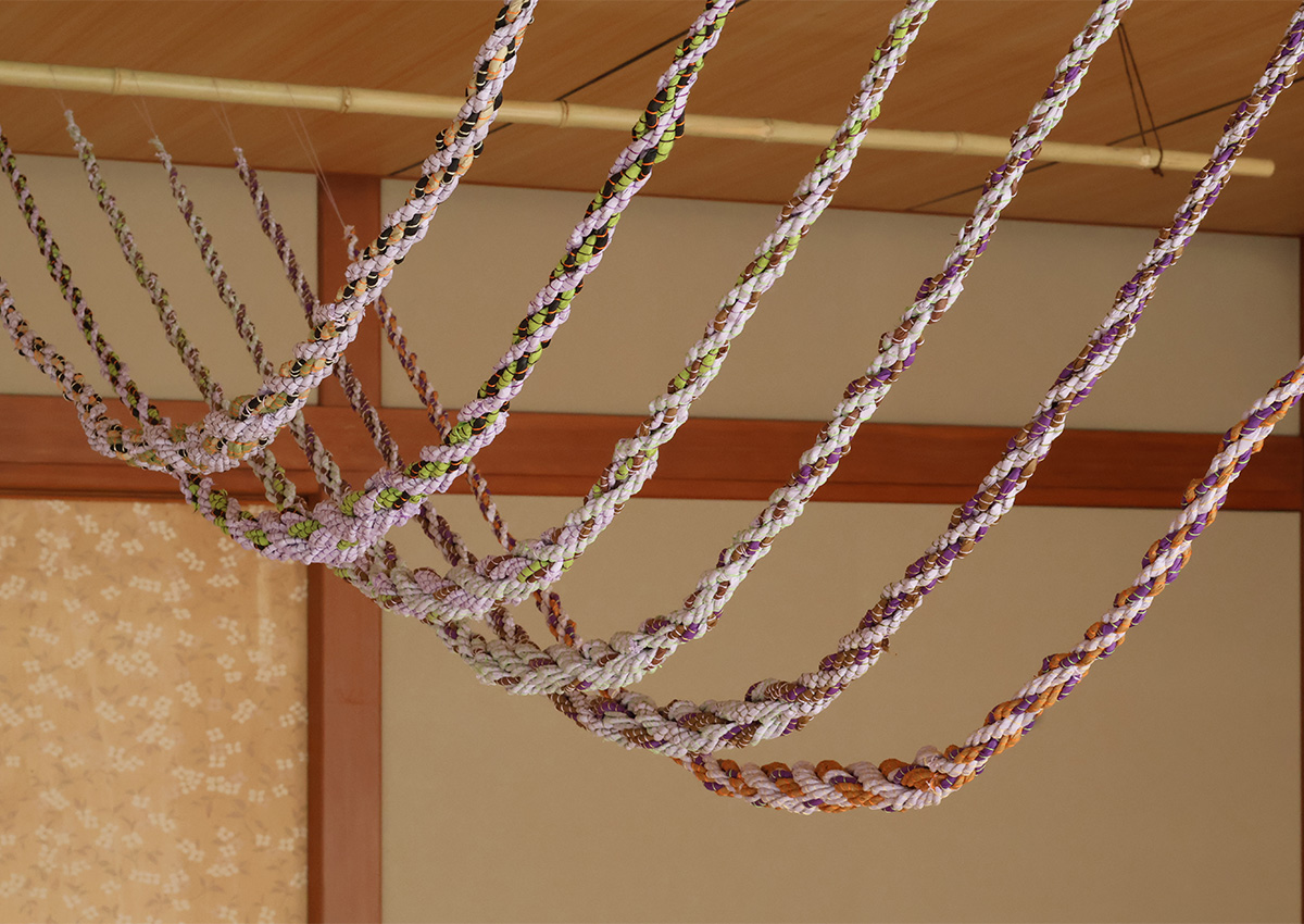 Rope is one of humanity's oldest technologies. During my stay at ZEN AIR Eiheiji in Japan, I became fascinated by the diverse meanings and contexts of rope. This curiosity led me to explore rope-making using local rice straw and washi (Japanese paper). I immersed myself in traditional practices, harvesting rice alongside local farmers and crafting waraji (traditional straw sandals) with Eiheiji monks. Incorporating Echizen washi into this ancient craft, I experimented with various shapes, patterns, and techniques.